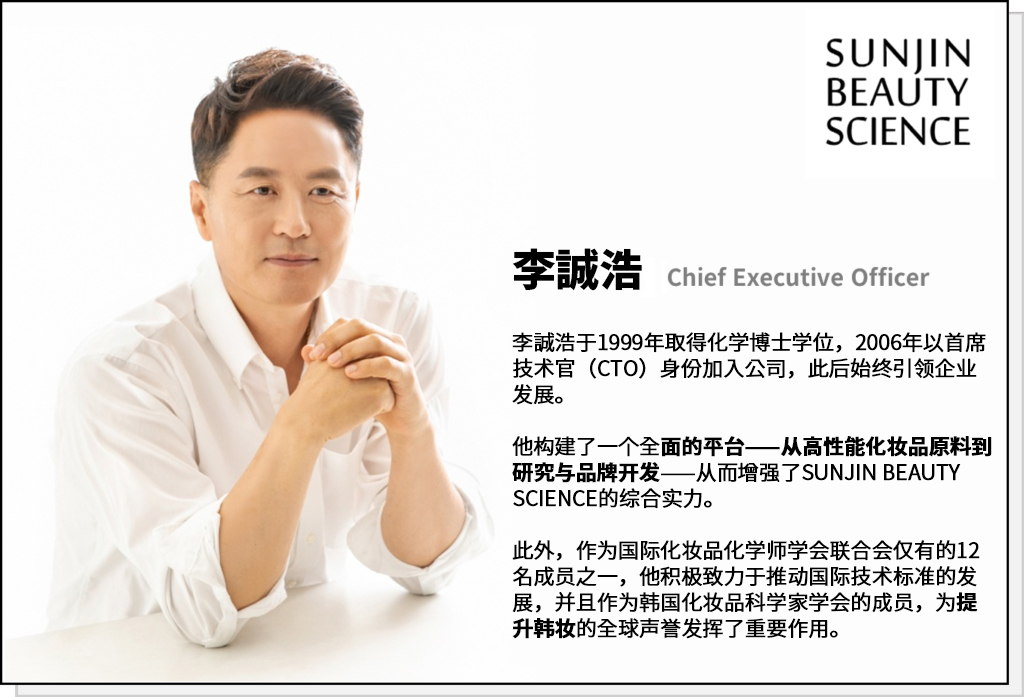 Sunjin Beauty Science的首席执行官李誠浩 Sungho Lee 已入选2025年亚太美妆行业“九大人物”奖项的获得者之一,该奖项是为了表彰2025年引领亚太地区美妆行业发展的创新领军者。
