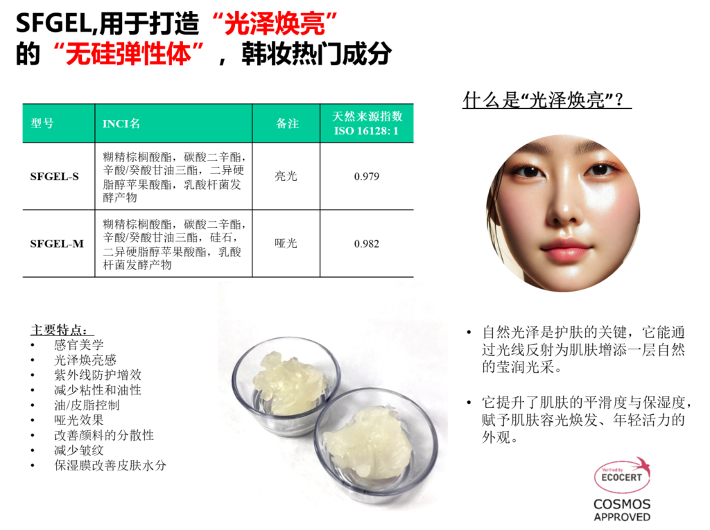 *核心成分1 – SFGEL-S (5%): 焕亮光泽的核心质地调节剂