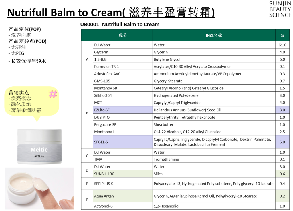 近年来主导全球市场的韩妆风向,无疑是 “由内而外透出来的清透焕亮和光泽感”。然而,在膏状配方中实现清透焕亮,同时保持高硬度与丰润滋养感,又不产生黏腻厚重感,一直是较大的挑战。本期通讯,我们将为您介绍SFGEL-S与EZLite-SF是如何通过Nutrifull Balm to Cream(滋养丰盈膏转霜,别名:Meltie)技术来升级焕亮配方。